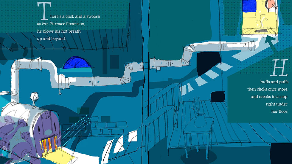 The sounds become her friends who draw her into new adventures and ultimately a state of restful slumber.